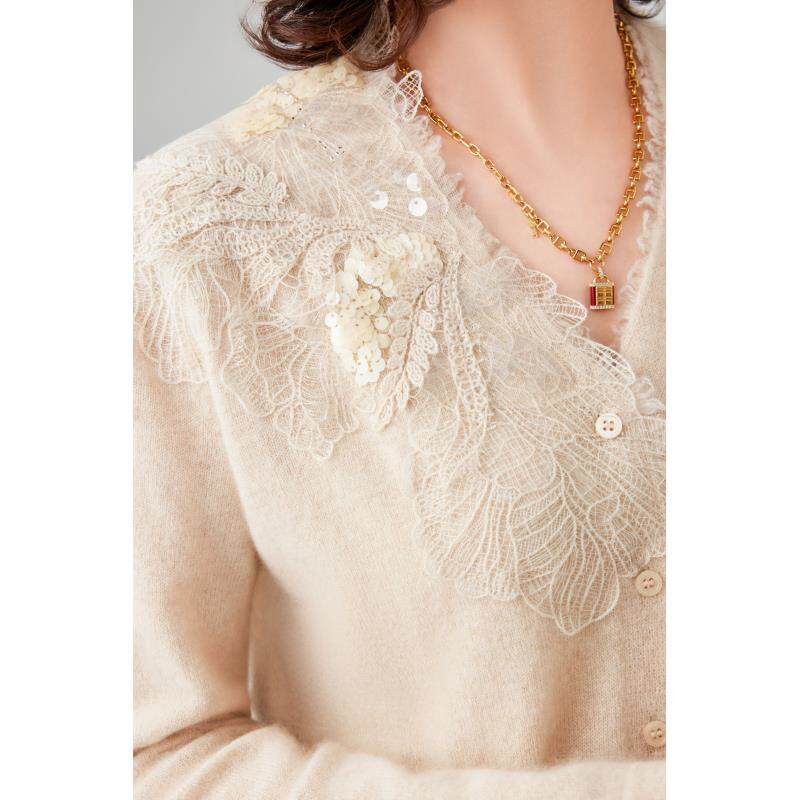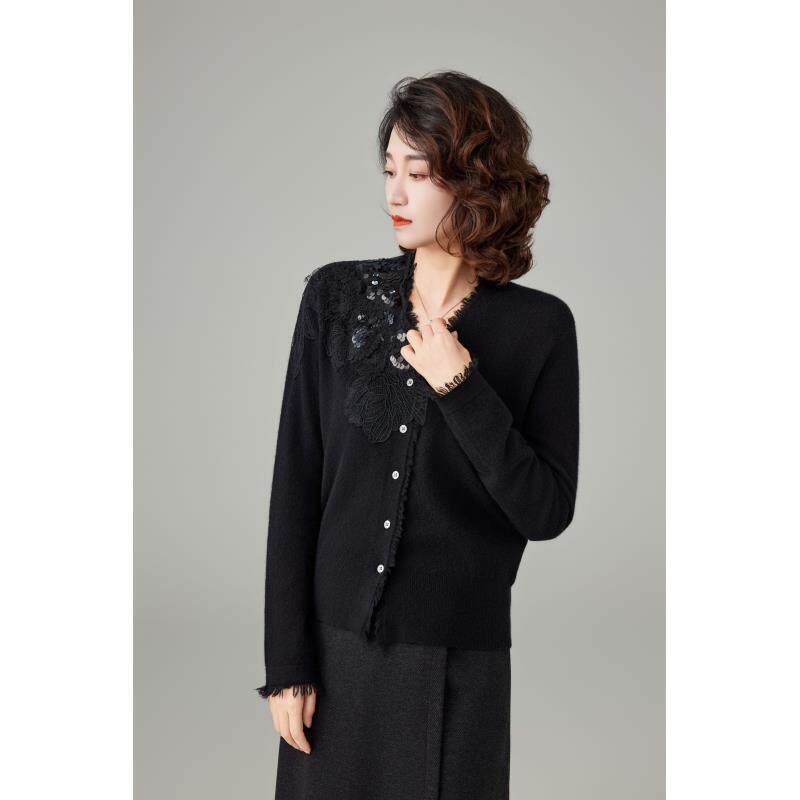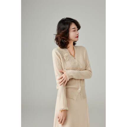 【100%纯山羊绒】中厚款气质时尚长袖针织开衫V领显瘦百搭休闲轻