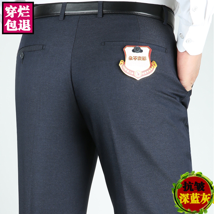 虎都桑蚕丝西裤男春夏薄款直筒宽松中老年男士裤子商务休闲裤