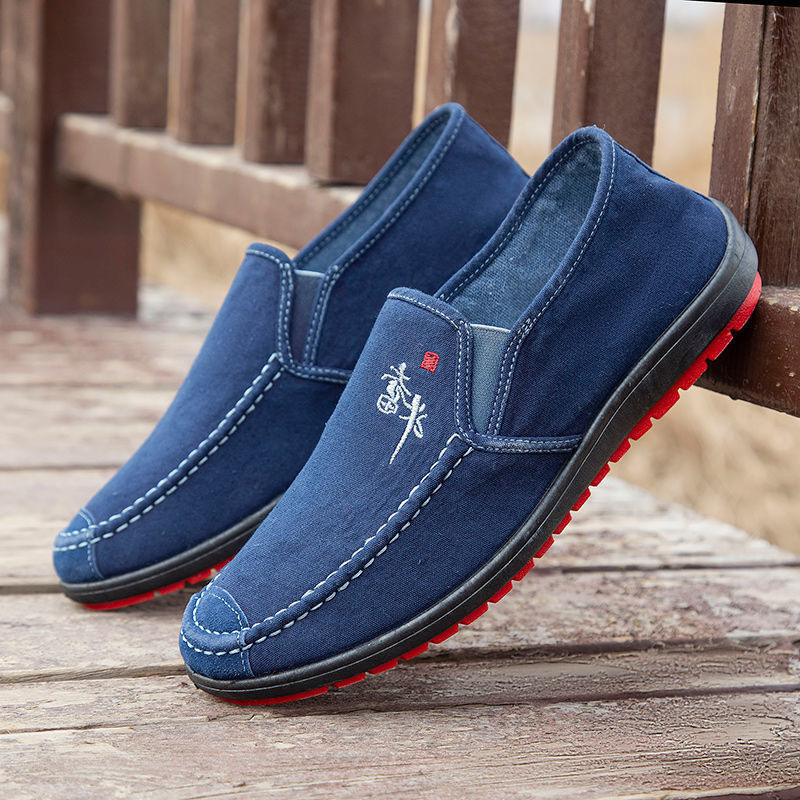 老北京布鞋男透气休闲鞋爸爸鞋春秋软底防臭一脚蹬懒人鞋帆布鞋