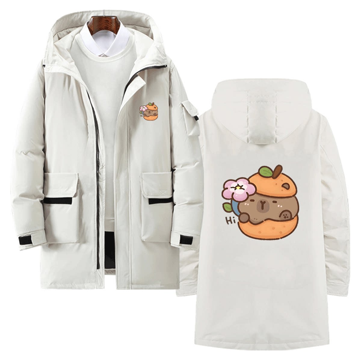 软萌可爱水豚卡皮巴拉表情动漫周边休闲可定制男女连帽外套羽绒服
