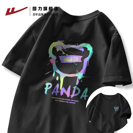 回力圆领短袖t恤男士夏季纯棉小熊半袖男生夏天衣服男款情侣上衣A