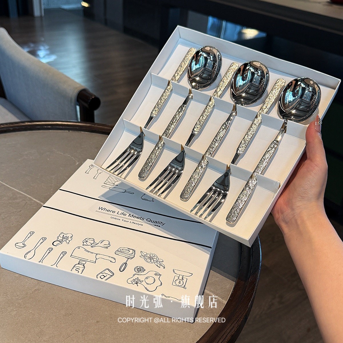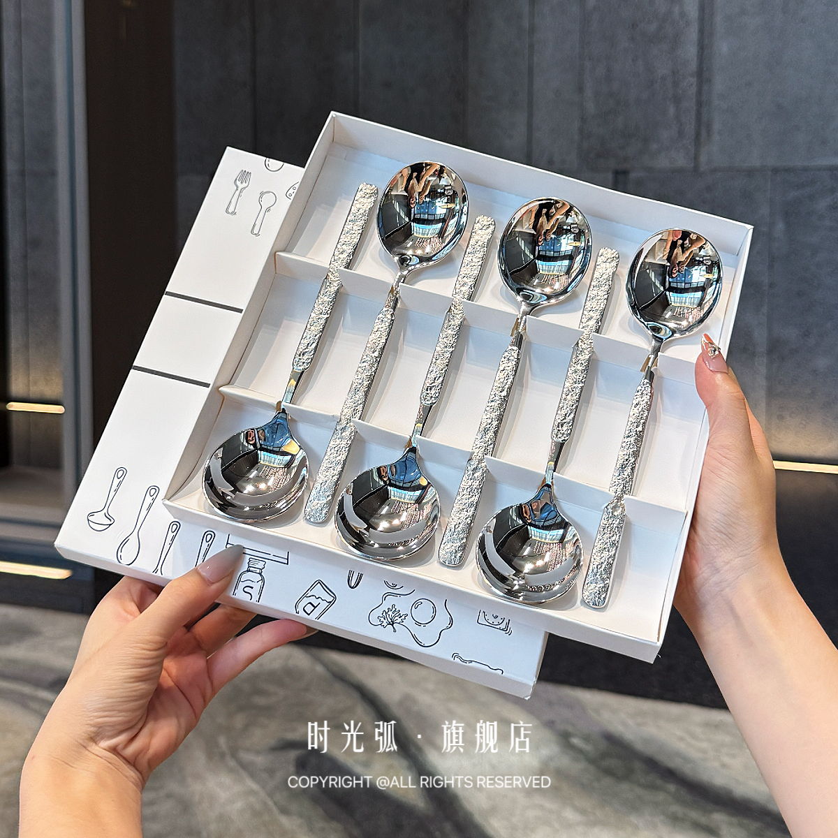 出德国|6支礼盒装|高级原版岩石柄304食品级不锈钢韩式长柄勺子