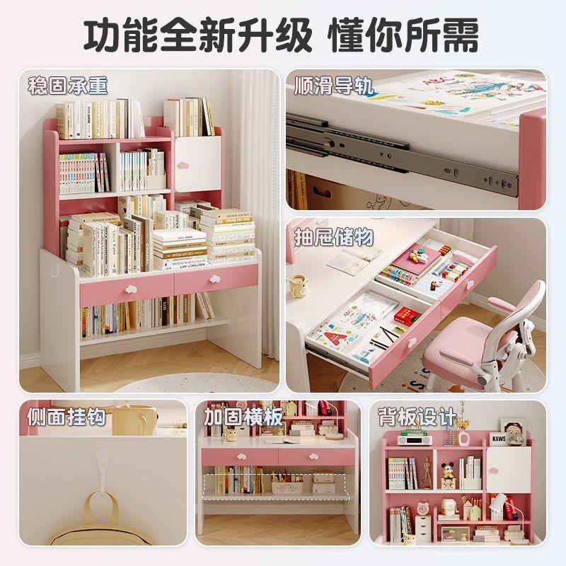 实木儿童书桌书架一体桌小学生学习桌卧室写字桌椅装家用床边桌