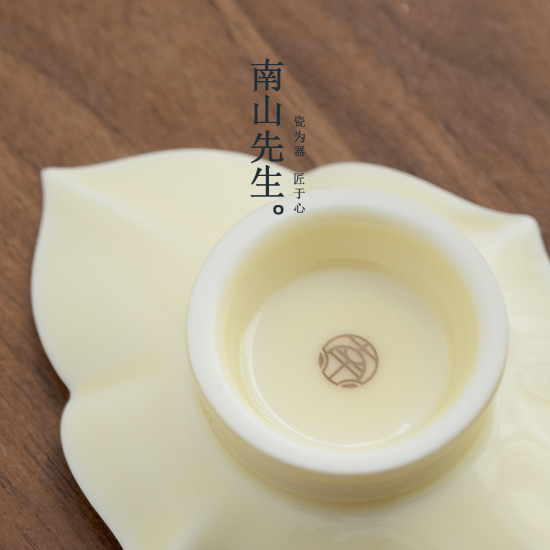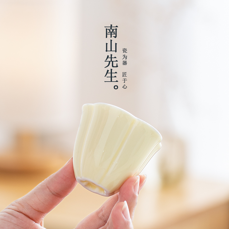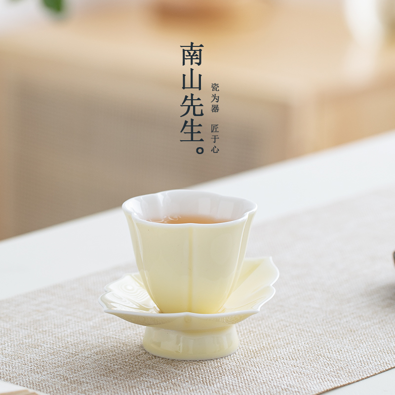 南山先生月光白梅花主人杯家用陶瓷茶杯个人专用品茗杯带杯垫单杯
