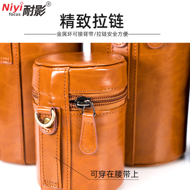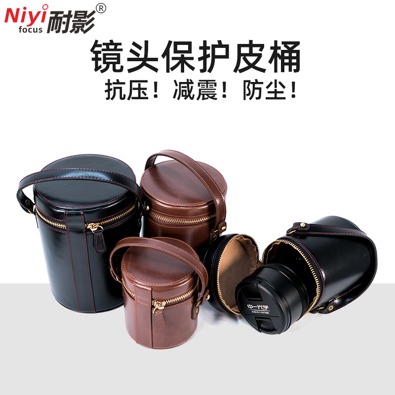 耐影皮革相机镜头筒收纳袋圆筒收纳包16-35mm摄影单反24-70 18-135桶加厚保护桶手提款耐磨抗压