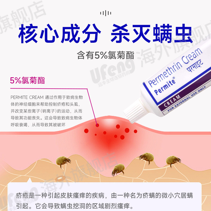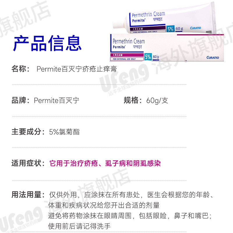 5%百灭宁进口Permite氯菊酯疥螨疥虫头虱体虱阴虱感染疥疮药膏60g