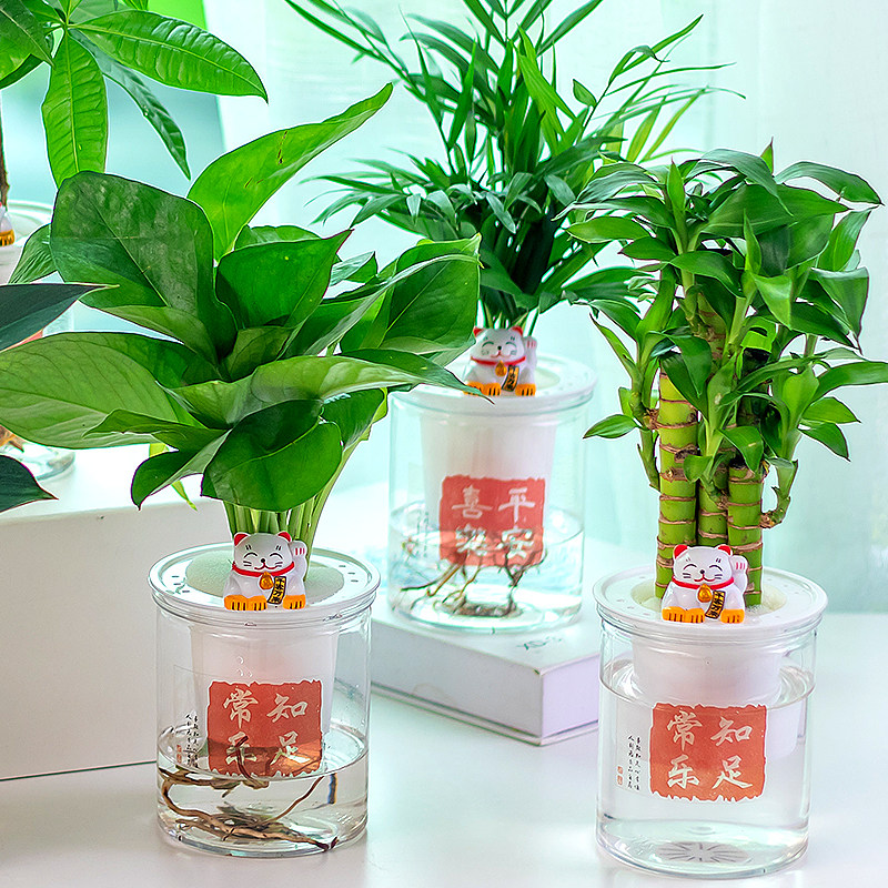 水培植物绿植四季水生裸根富贵竹绿萝吉利红办公室内桌面水养盆栽