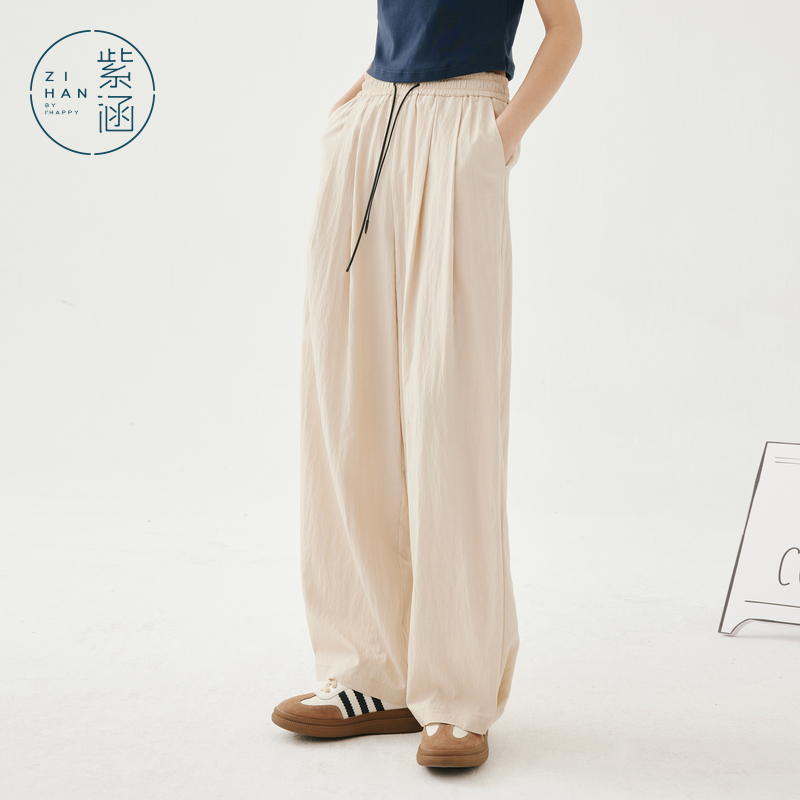 紫涵薄款直筒休闲长裤女夏季新款垂感宽松高腰通勤山本裤纯色百搭