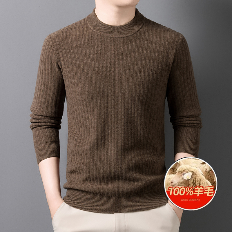 秋冬季针织衫半高领毛衣男士100%纯羊毛衫休闲百搭纯色套头打底衫