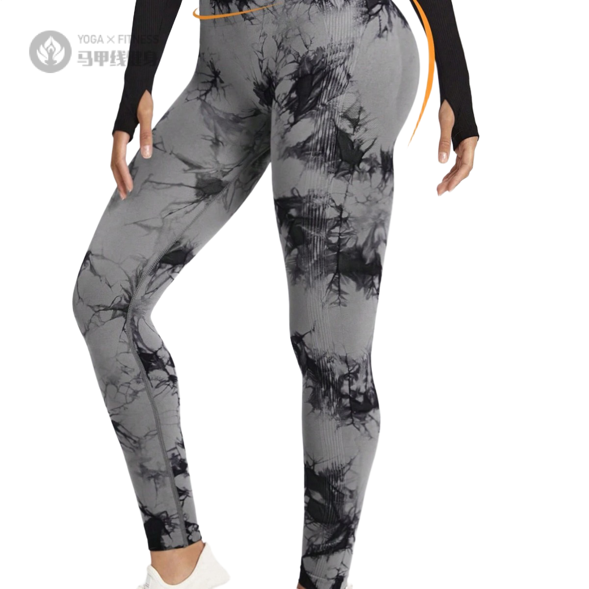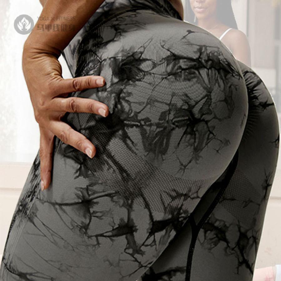 欧美大码缝蜜桃翘臀瑜伽裤扎染