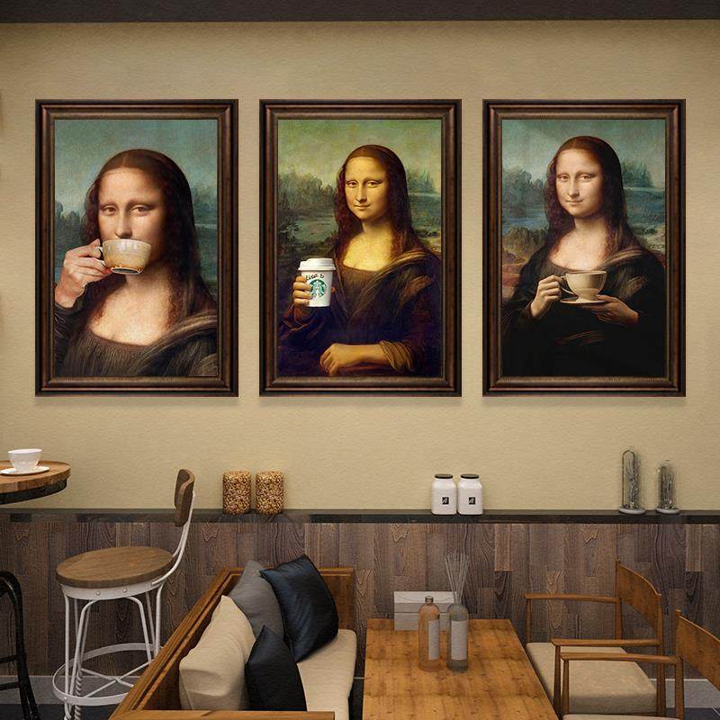 趣味恶搞蒙娜丽莎挂画浴室厕所卧室客厅世界名画覆古咖啡厅装饰画