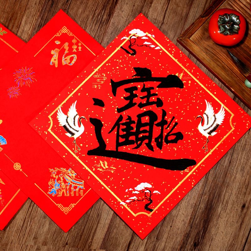 2026年马年新款对联春联宣纸蜡染福字斗方纸毛笔书法对联空白手写