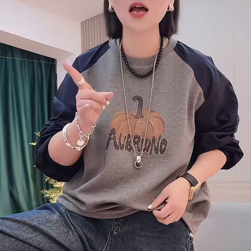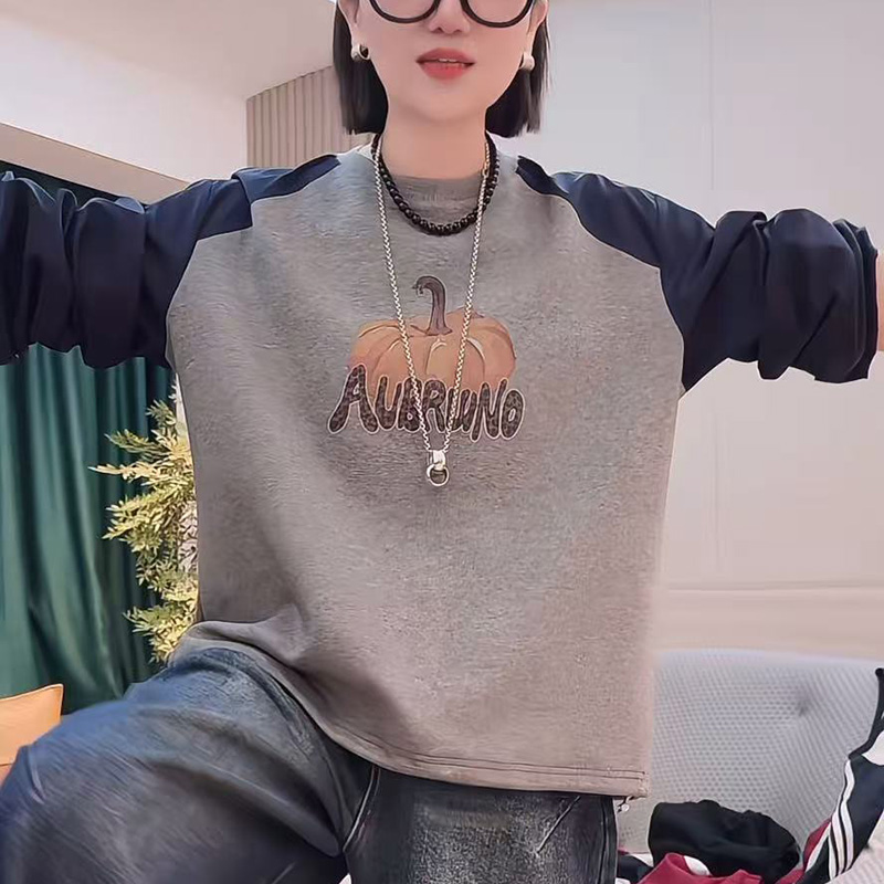 字母无帽圆领卫衣女秋冬插肩袖潮