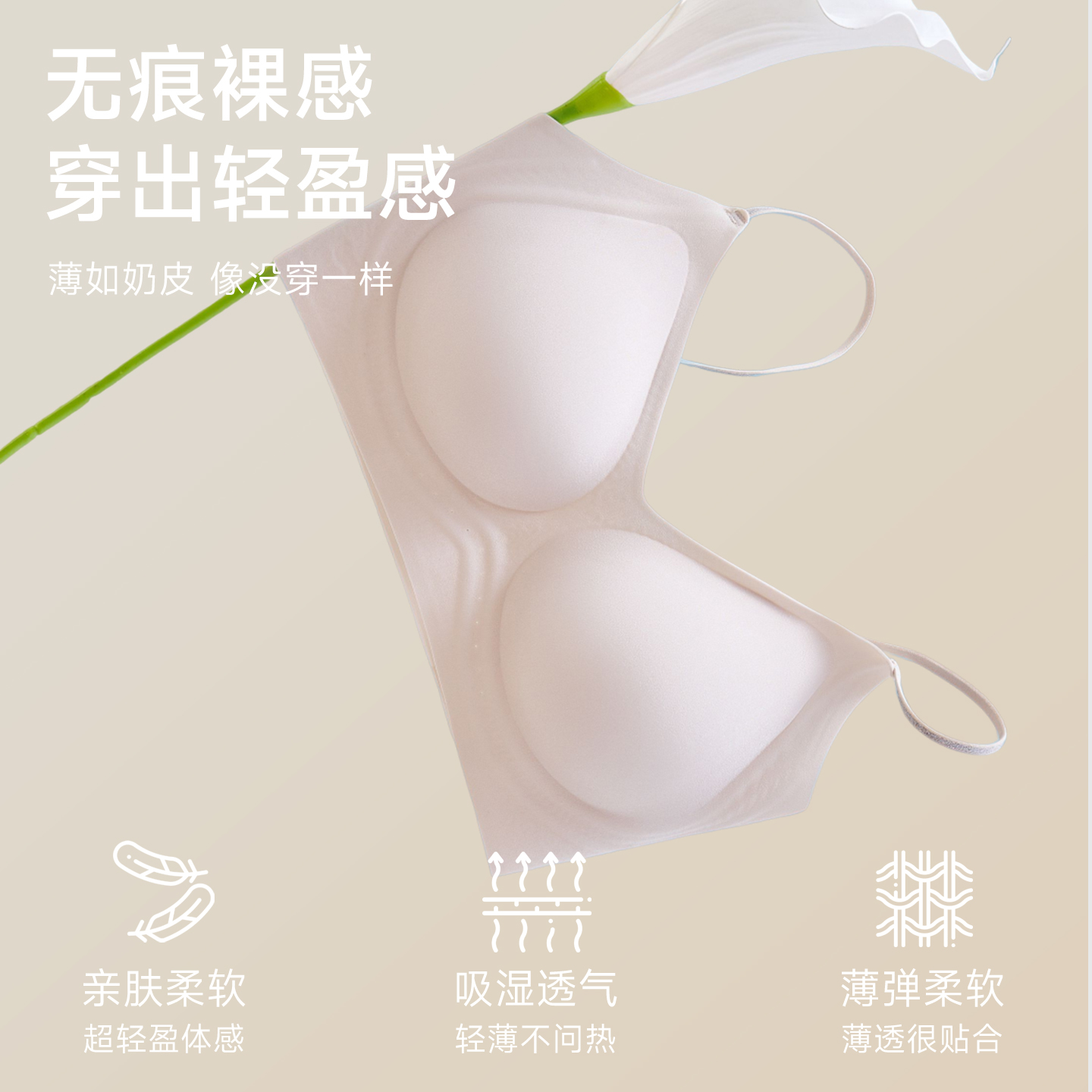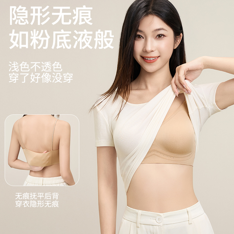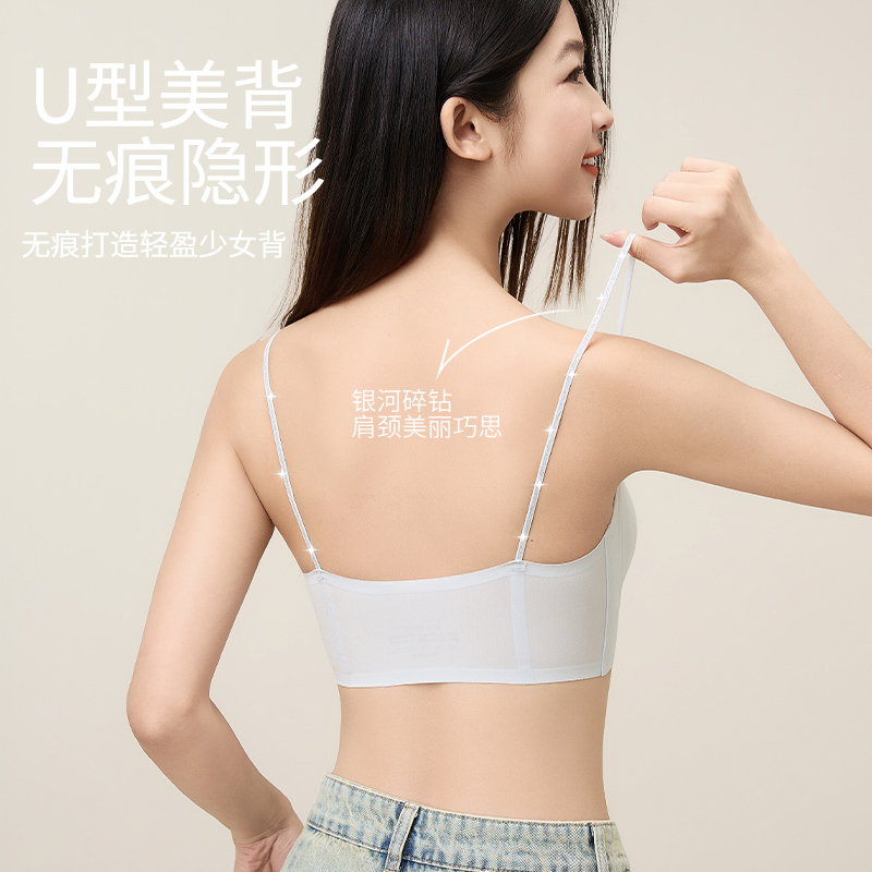 猫人无痕细肩带内衣女夏季薄款凉感隐形吊带小胸聚拢美背心式文胸