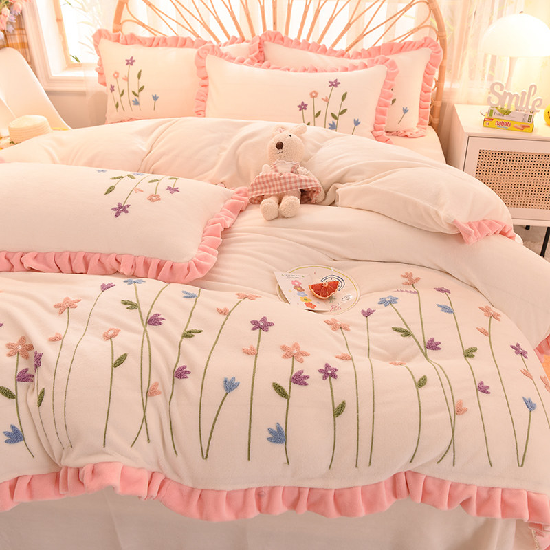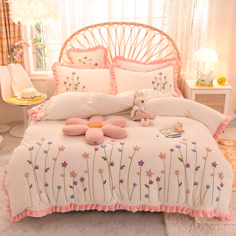 冬季加绒珊瑚绒床上四件套加厚牛奶绒双面绒公主风法莱绒床上用品
