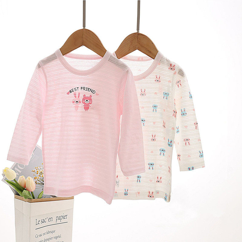 夏季薄款外贸男女儿童长袖T恤竹节纯棉婴儿宝宝空调衫家居服睡衣