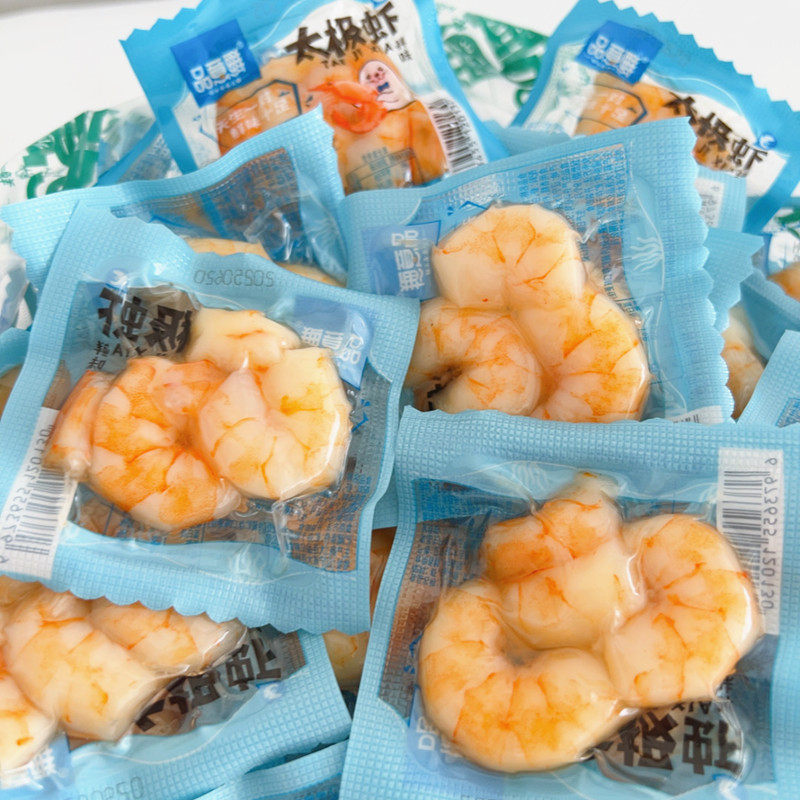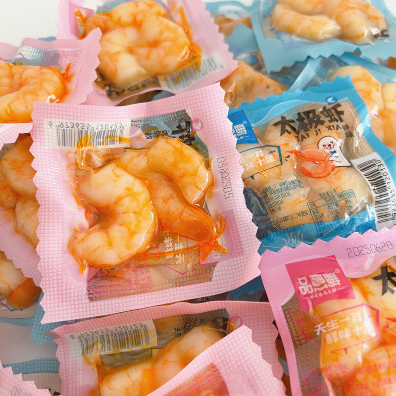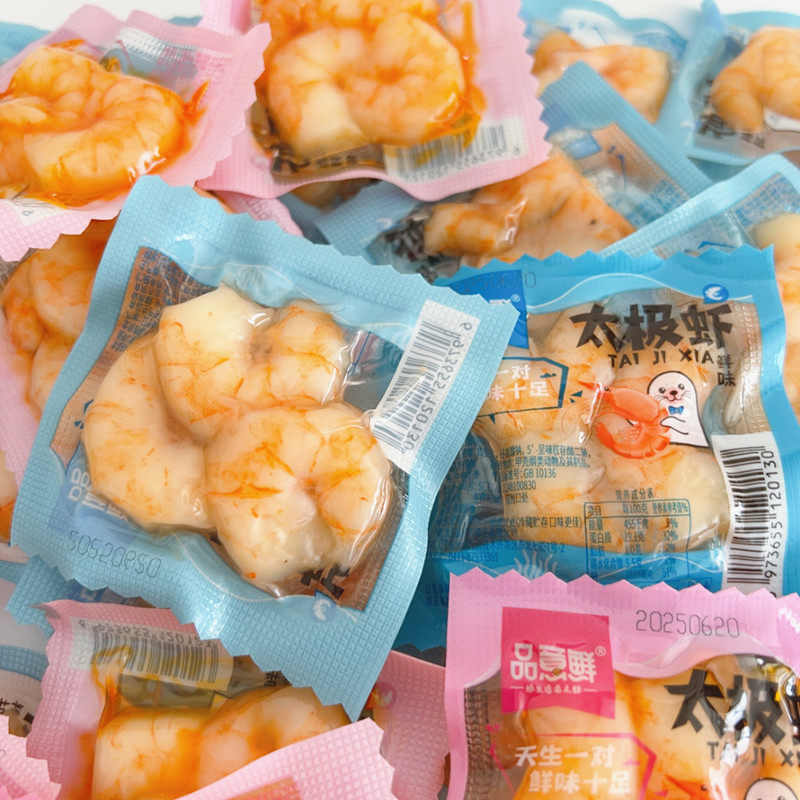 新品大连特产品意鲜太极虾开袋即食虾仁鲜味香辣味小包装海鲜零食