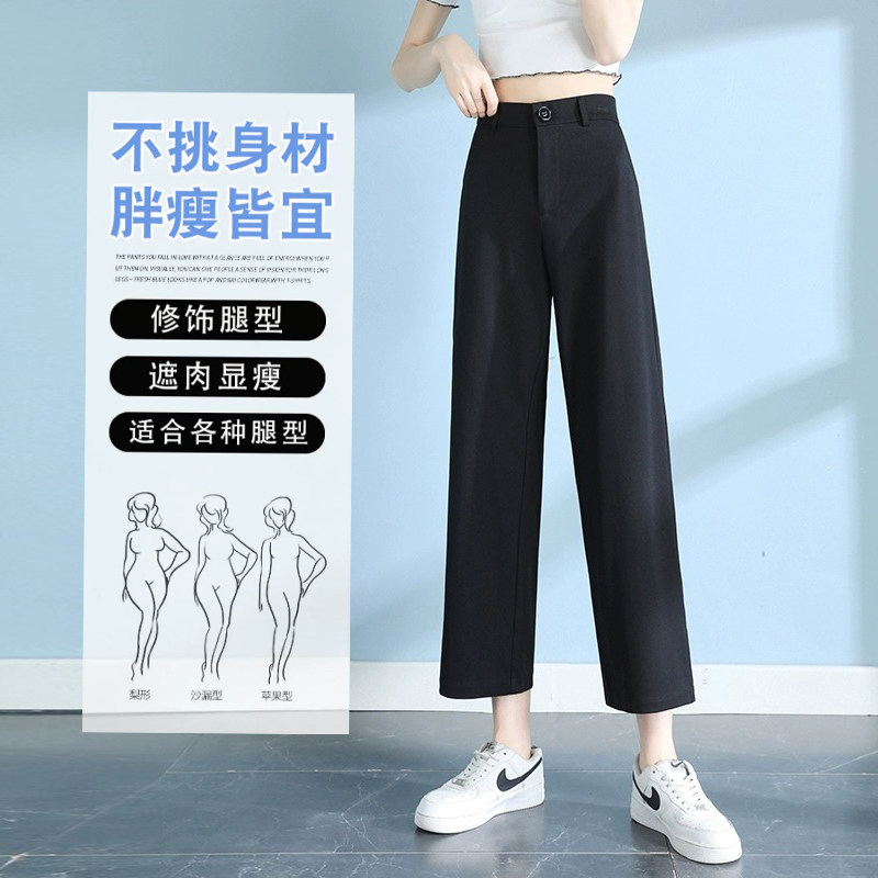 窄版阔腿裤女小个子八分2026新款高腰垂感西装裤九分直筒黑色裤子