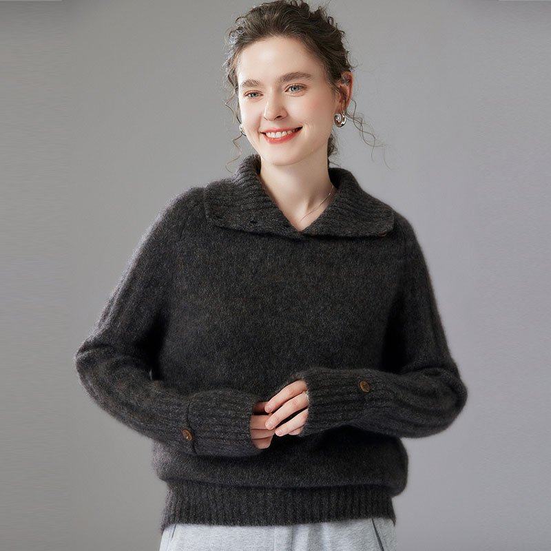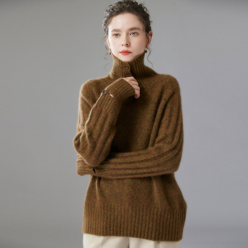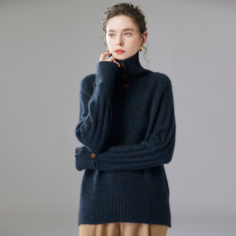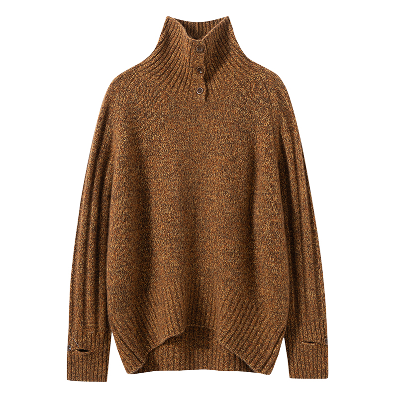 2025秋冬新款桑蚕丝羊绒衫女显瘦御寒高领套头针织衫纽扣装饰毛衣