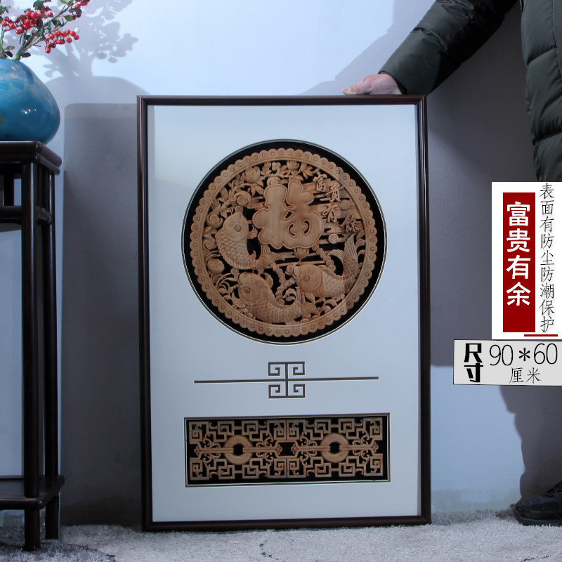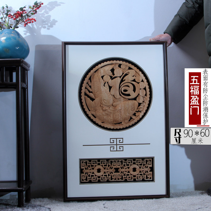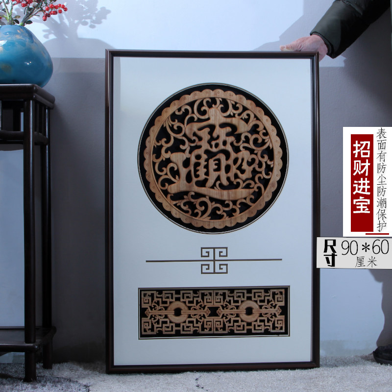 新中式墙饰东阳木雕装饰仿古挂画客厅玄关走廊背景墙壁福招财进宝