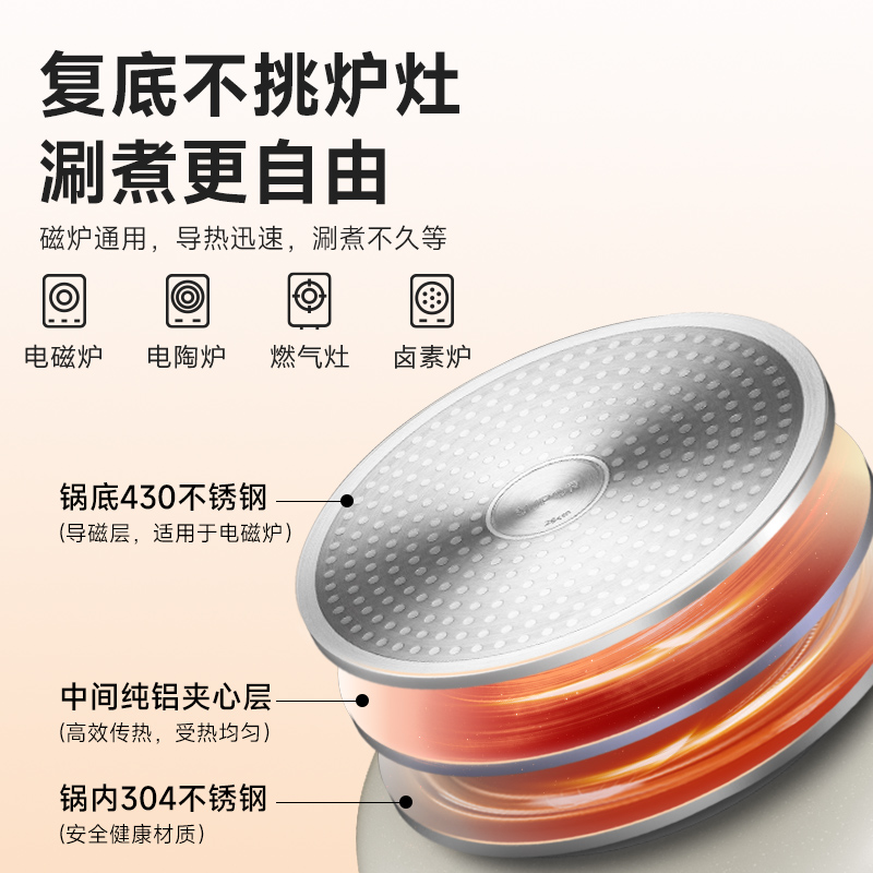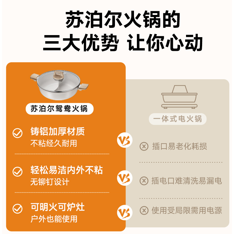 苏泊尔鸳鸯锅火锅锅具家用多功能一体汤锅户外火锅燃气电磁炉通用