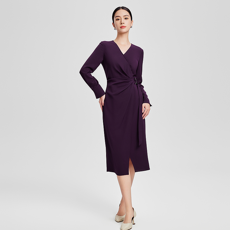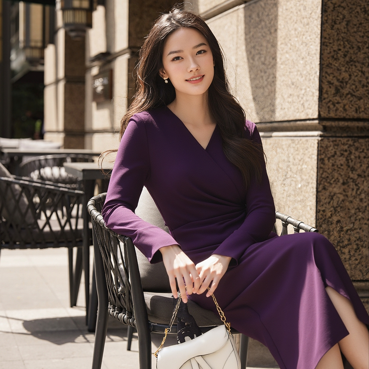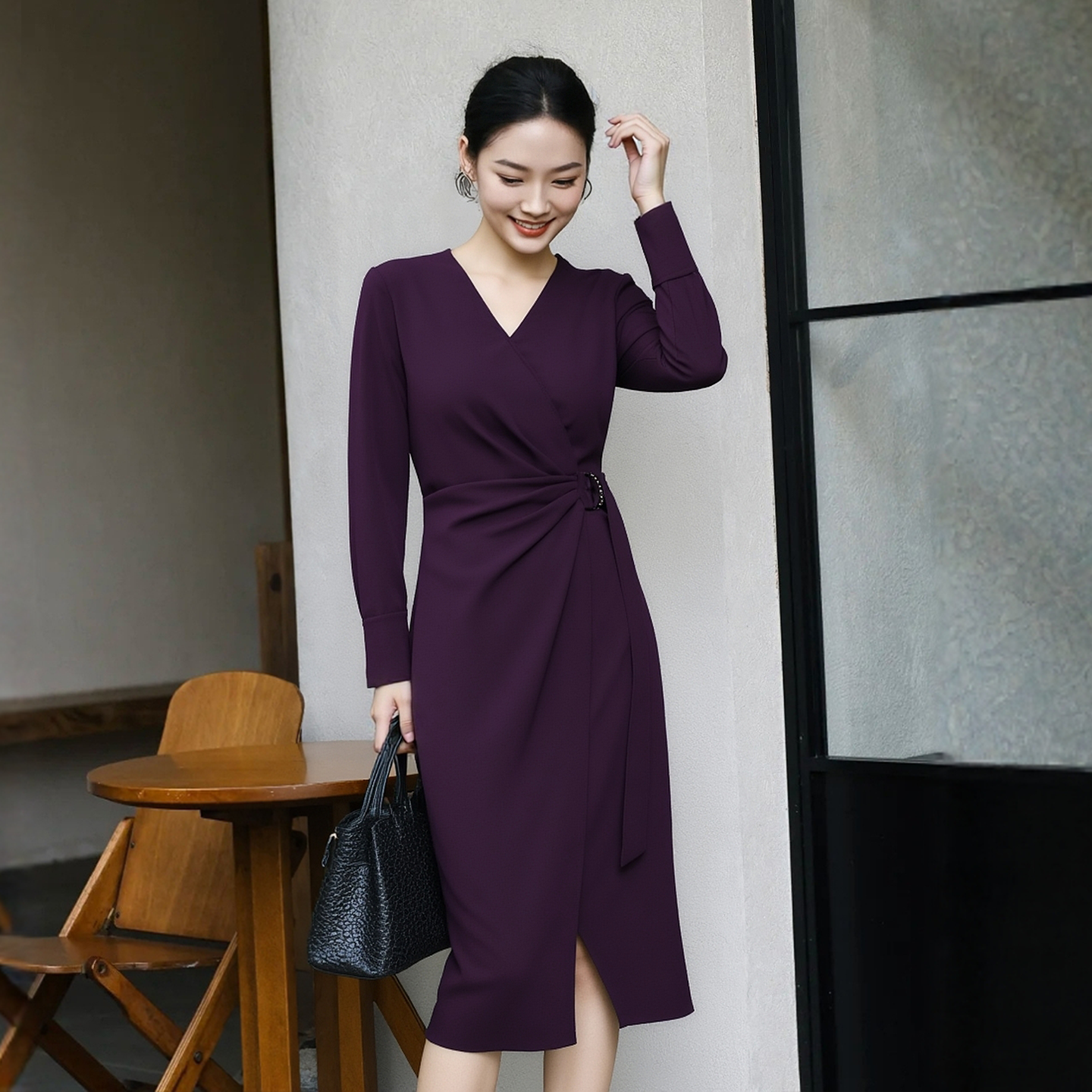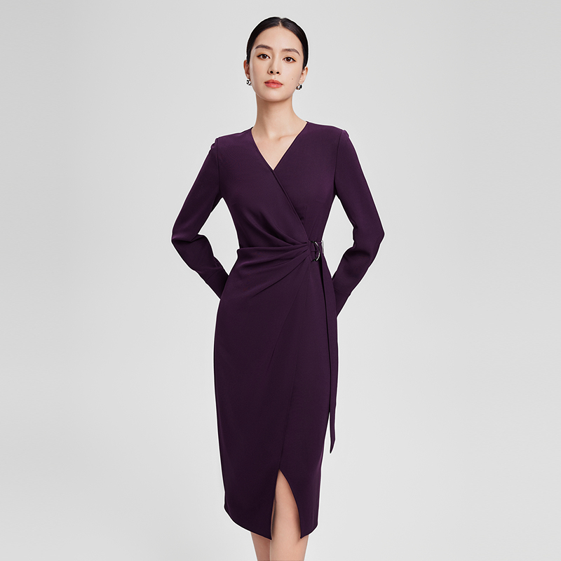 赢智尚巨好看的早秋长袖醋酸连衣裙重要场合漂亮宴会气质修身裙子