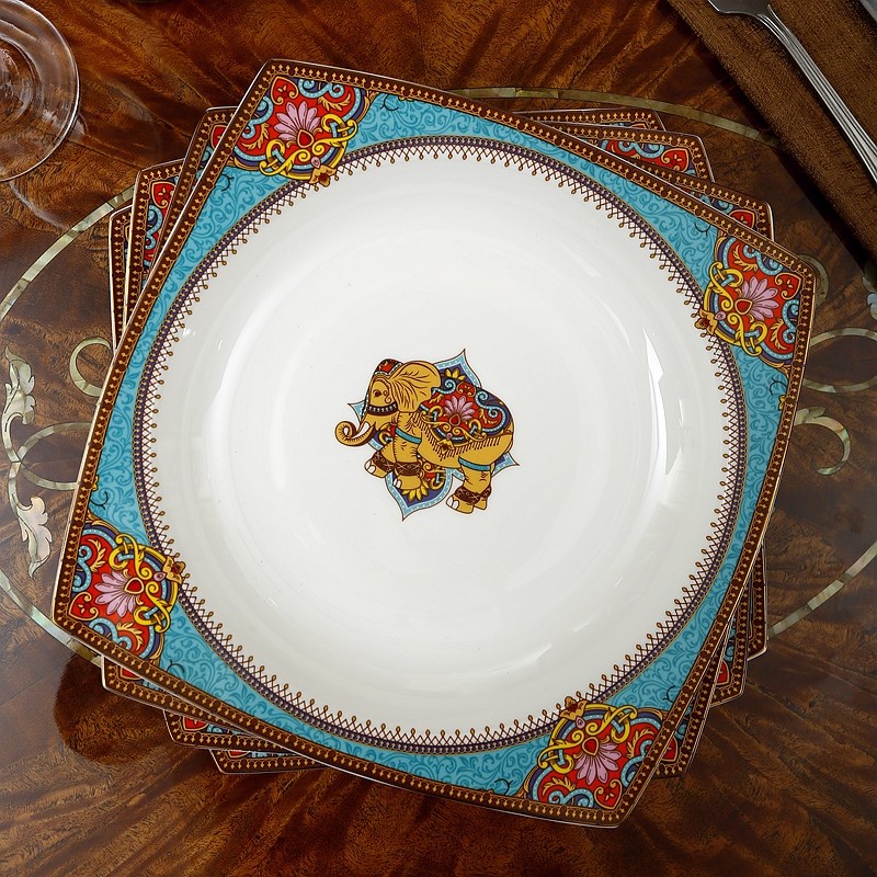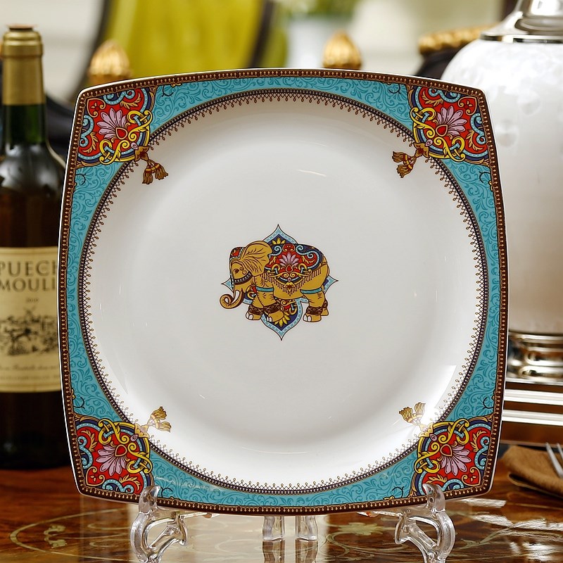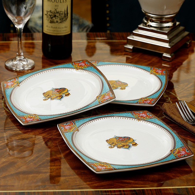 欧式方形盘子菜盘家用深盘陶瓷碟子骨瓷餐盘牛排盘西餐盘餐具套装
