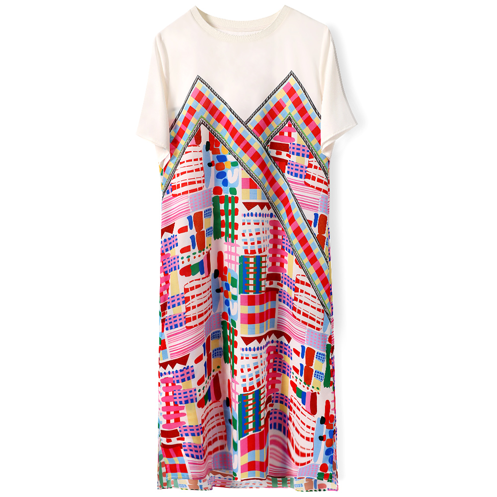 星辰画布~高级感民族风气质拼色宽松显瘦连衣裙洋气直筒T恤裙夏