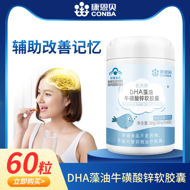 康恩贝DHA牛磺酸锌软胶囊辅助改善记忆力儿童青少年学生保健品