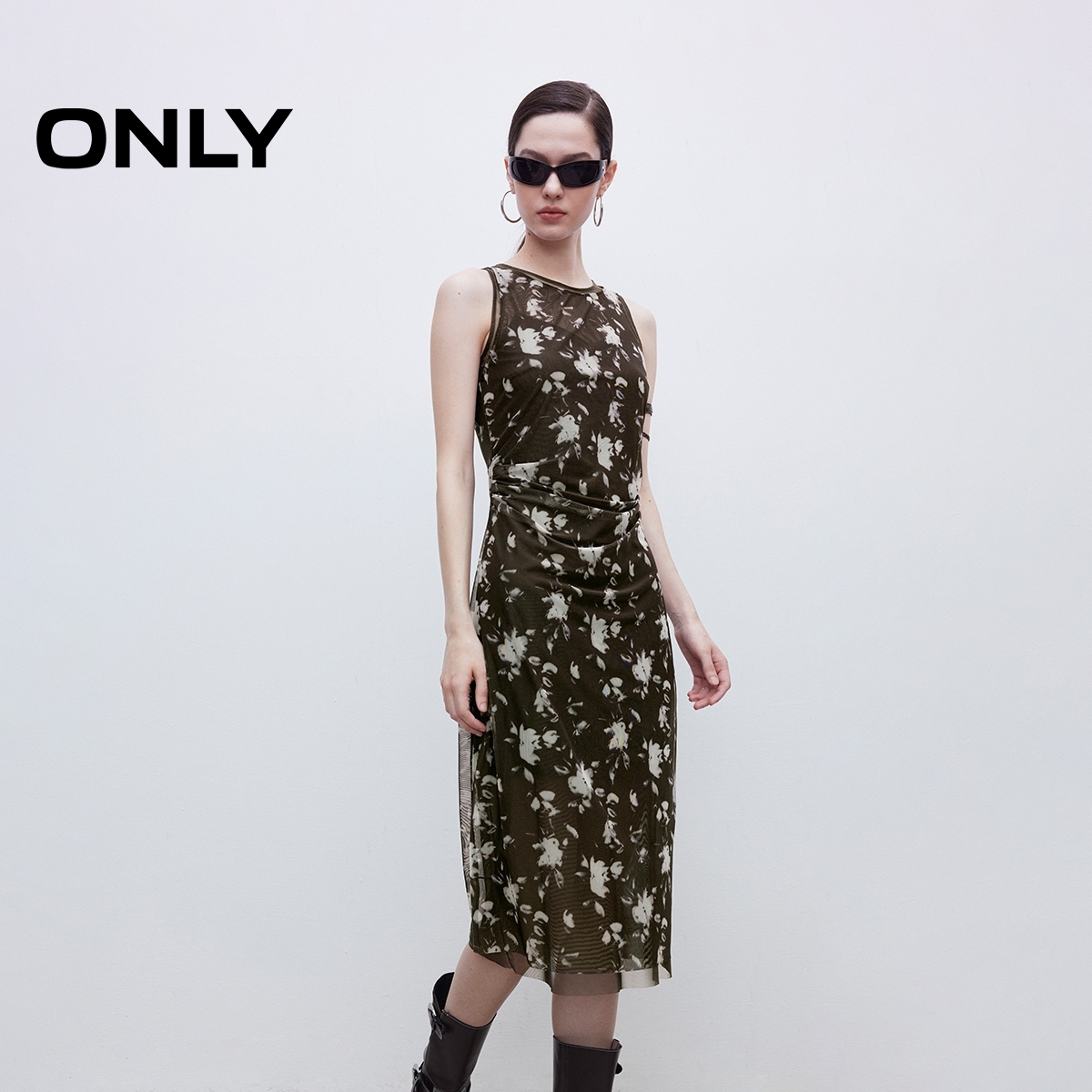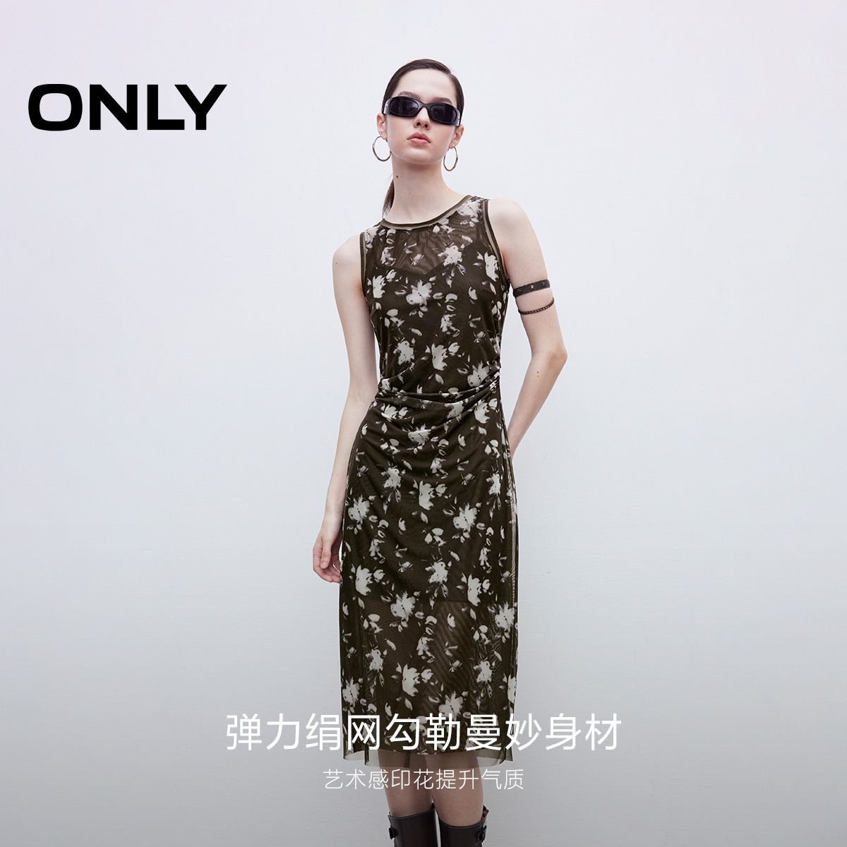 ONLY2025夏季新款优雅气质印花显瘦无袖中长裙连衣裙女|125361001