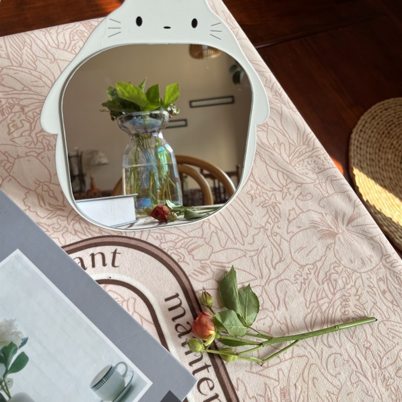 化妆镜子台式梳妆镜子公主镜折叠便携大号网红简约随身宿舍桌面女