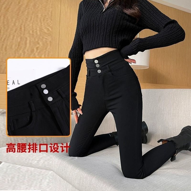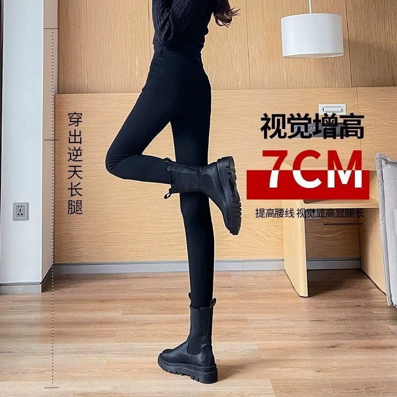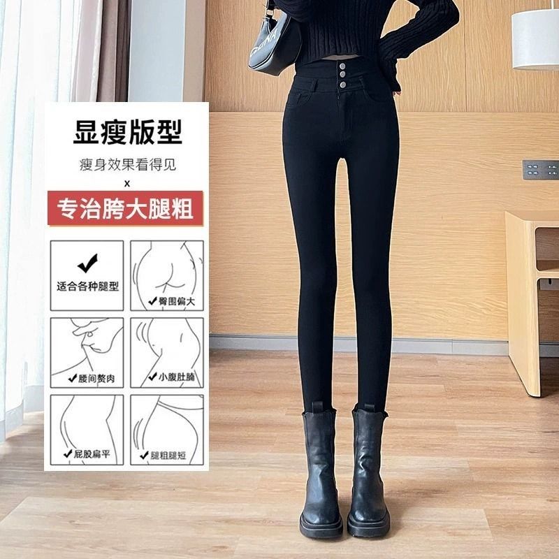 加绒加厚黑色打底裤女秋冬新款小个子外穿紧身高腰修身小脚铅笔裤