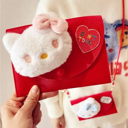 Kitty红包袋可爱毛绒pu皮横款高级感斜跨可背带挂绳凯蒂猫利是封