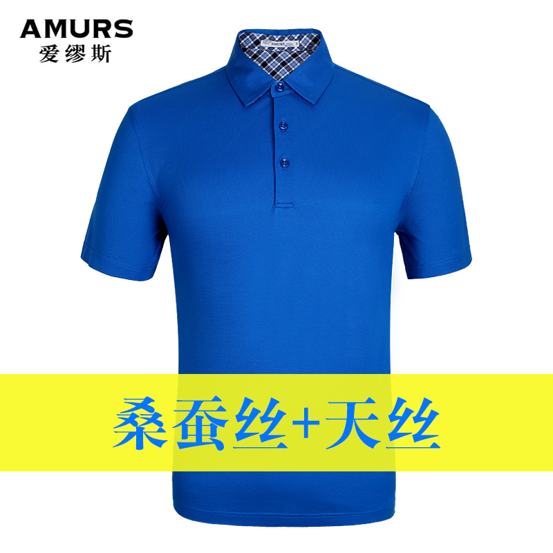 Amurs/爱缪斯夏季新款中年男士桑蚕丝混纺短袖t恤休闲珠地POLO衫