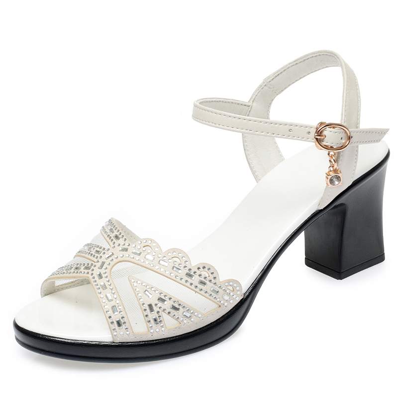 妈妈凉鞋2021年新款女夏季中跟粗跟厚底时装女鞋走秀高跟鞋跳舞鞋