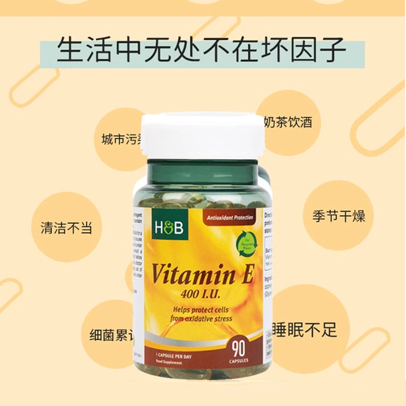 英国荷柏瑞HB维生素E 皮肤VE 400iu 90粒软胶囊Holland&Barrett