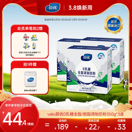 蔚优valio无乳糖奶粉3盒低GI成人奶粉芬兰进口全脂脱脂牛奶粉