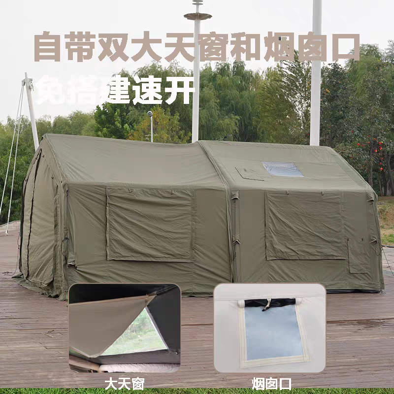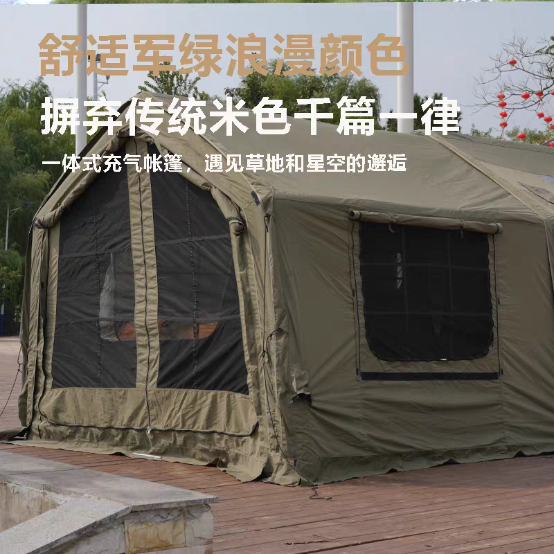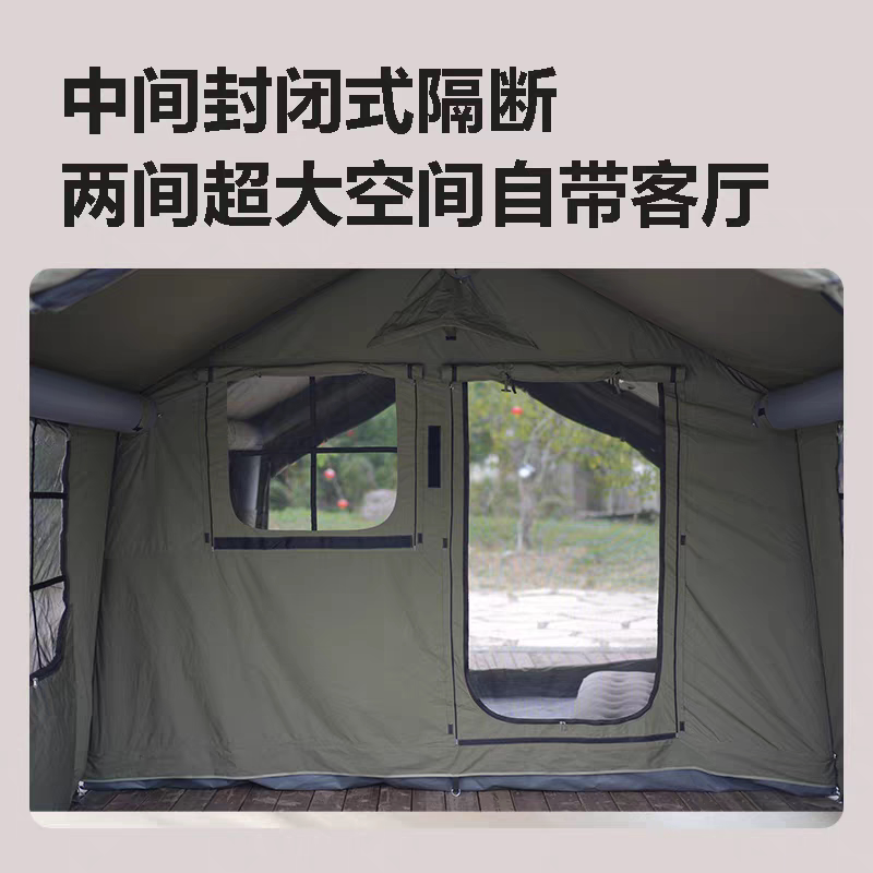 云端行8+8.8㎡军绿充气帐篷过夜露营野营地8平米棉布模块带拓展