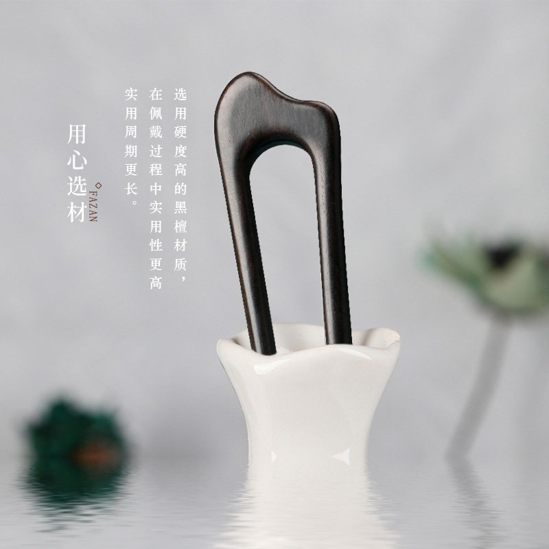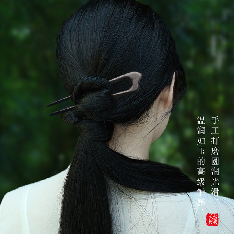 u型双钗黑檀木复古简约盘发簪子