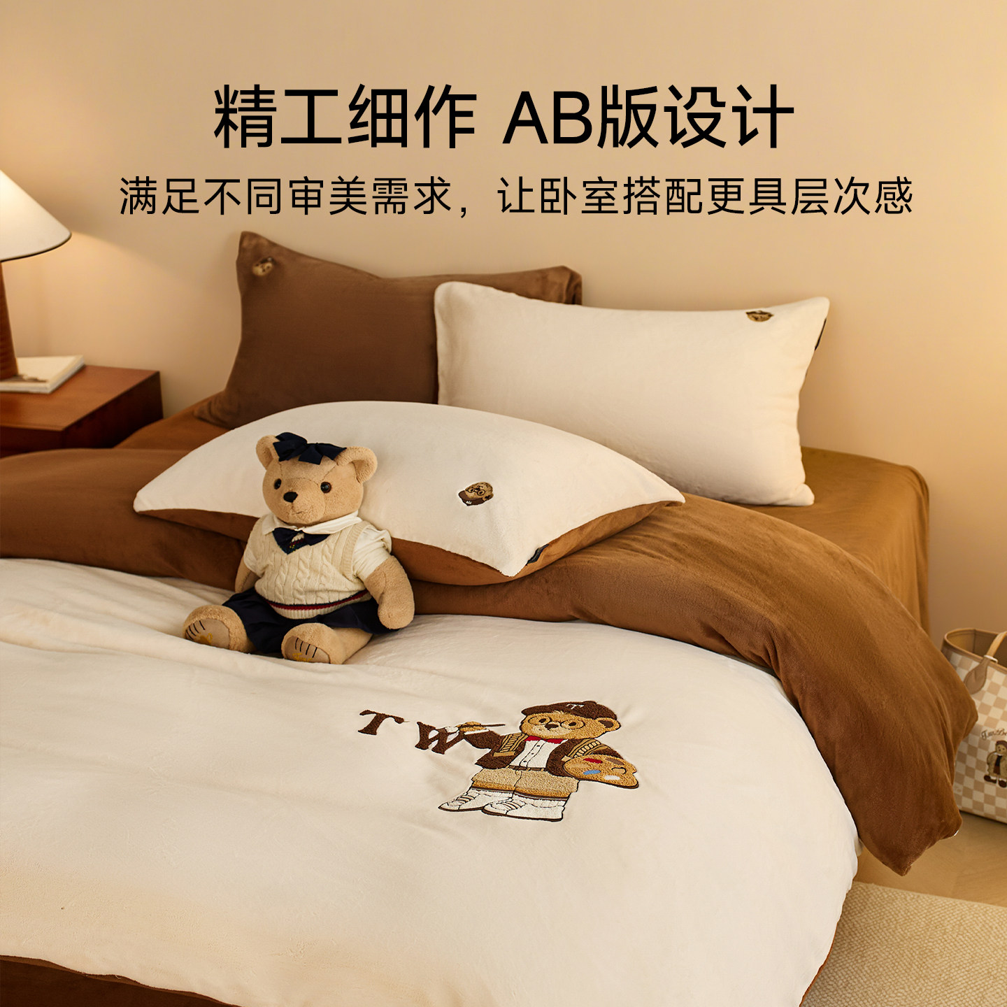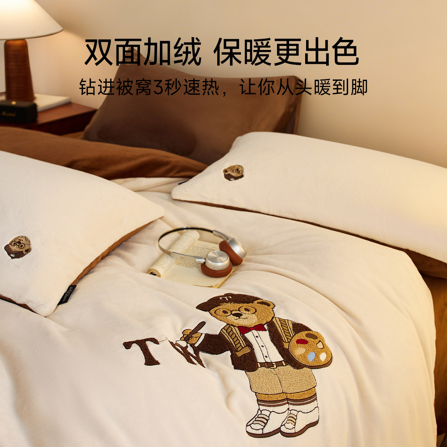 TeenieWeenie小熊毛巾绣加厚牛奶绒四件套珊瑚绒加绒被套床单冬季
