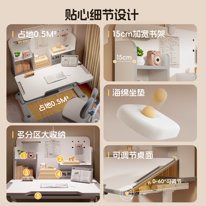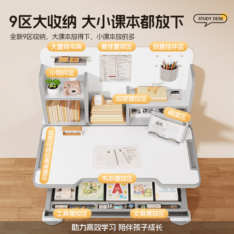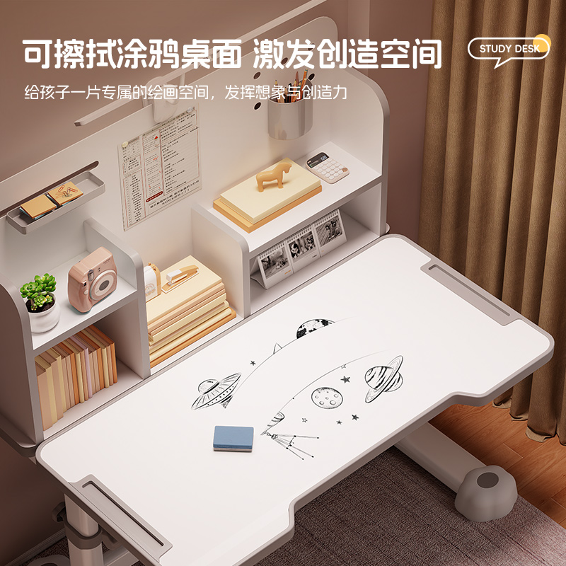 2025新款学习桌儿童书桌小户型家用升降可调节课桌椅套装书柜一体