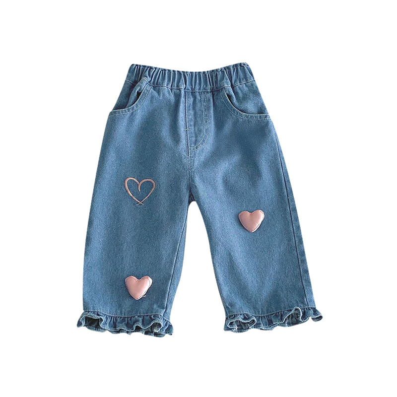 女童爱心牛仔裤洋气春季韩版儿童休闲裤小女孩百搭宝宝宽松长裤子