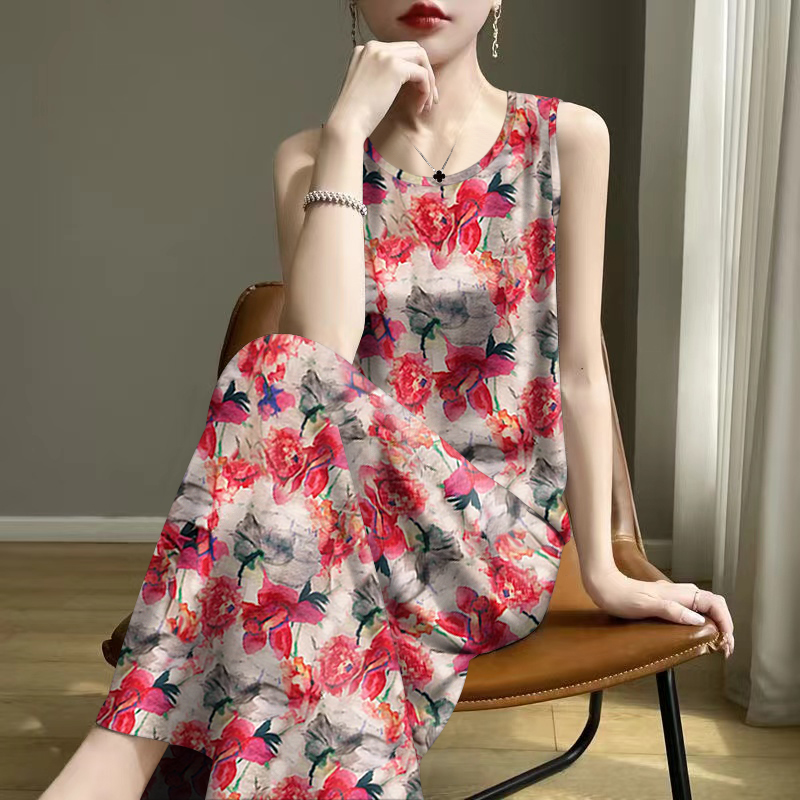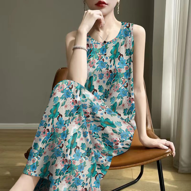 广州十三行高端爆款~印花减龄遮肚妈妈装背心吊带中长款连衣裙女