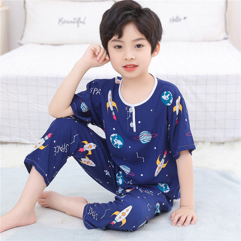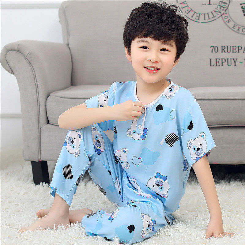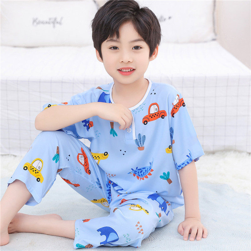 儿童睡衣夏季男童女童中大童棉绸套装宝宝绵绸空调家居服短袖薄款