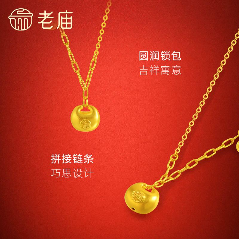 老庙黄金足金锁包项链古法精致饱满寓意吉祥锁住福气福运年年送礼