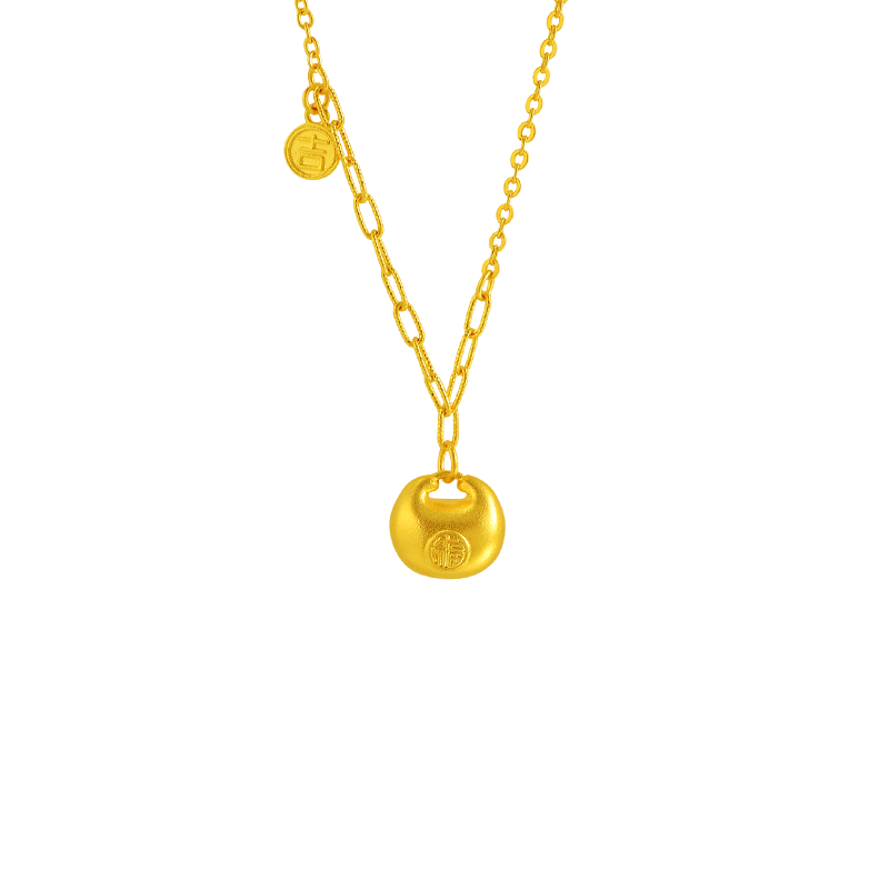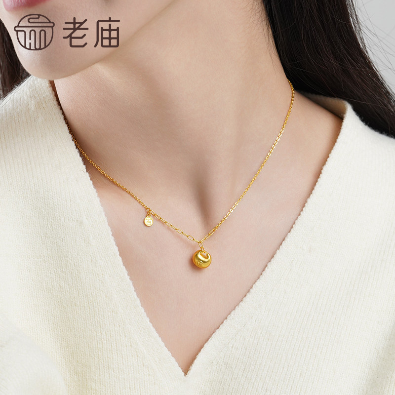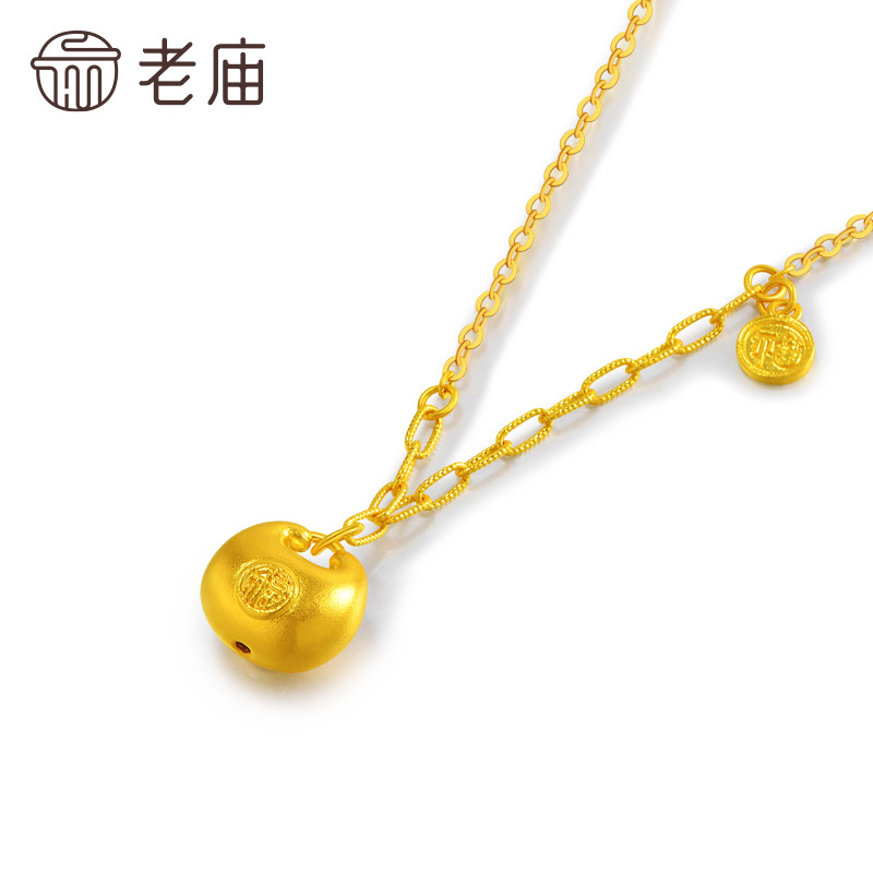 老庙足金锁包项链古法精致饱满