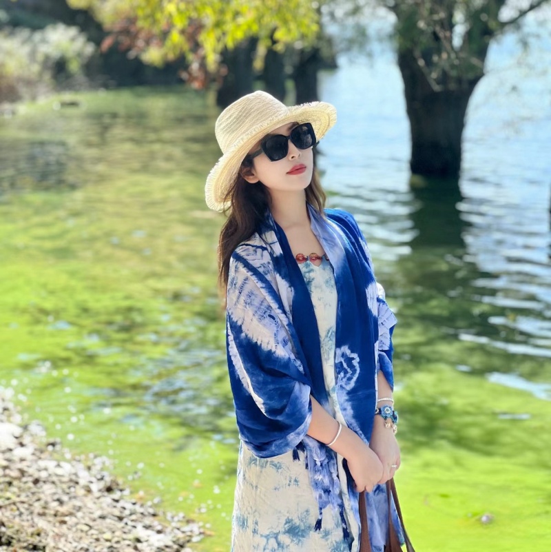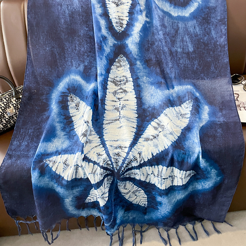 夏季蓝色系纱巾海边度假丝巾沙滩巾云南扎染民族风围巾女防晒披肩
