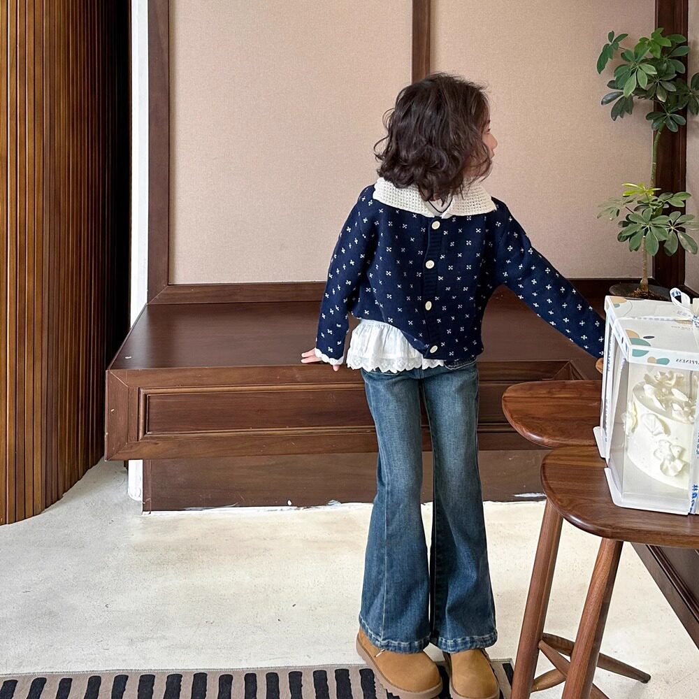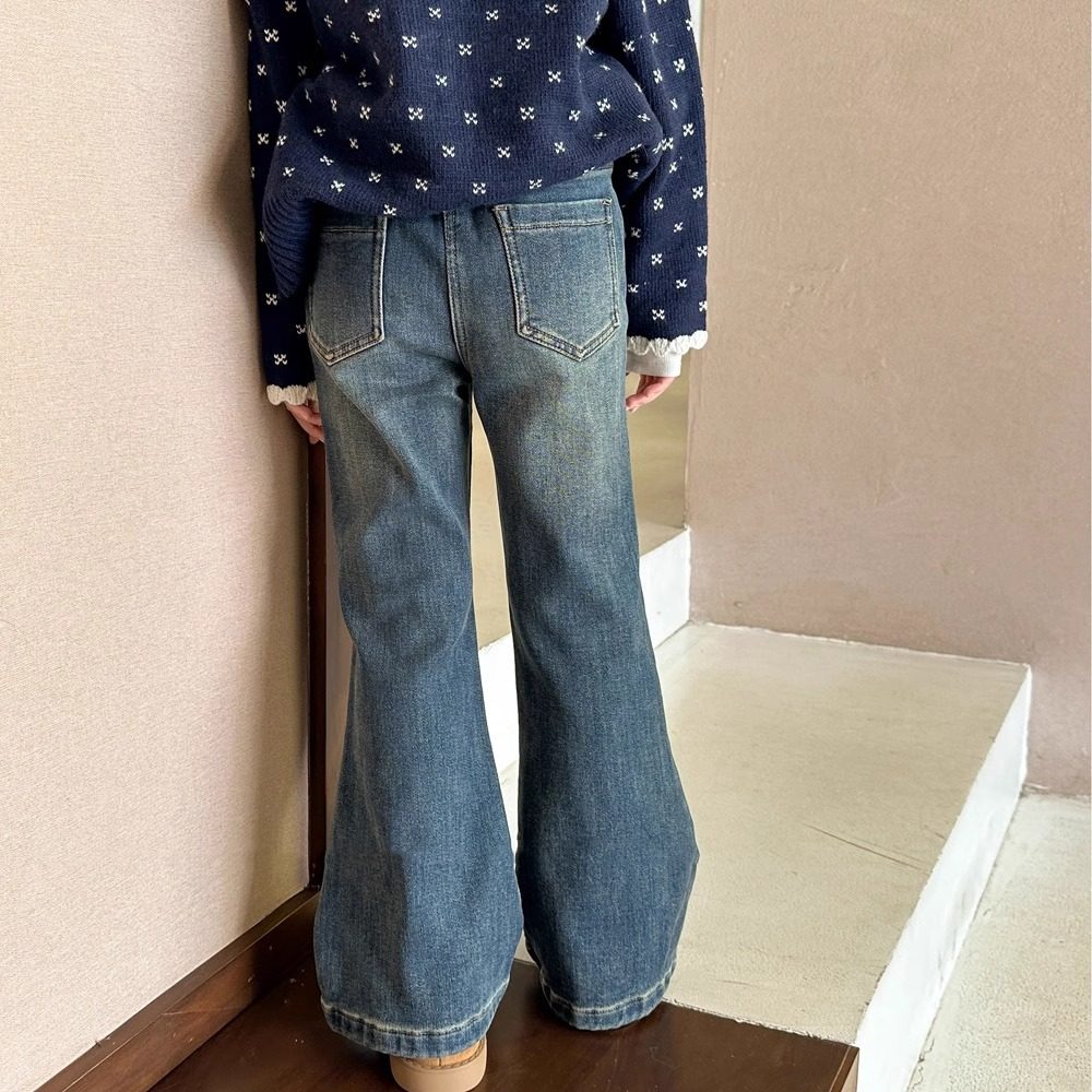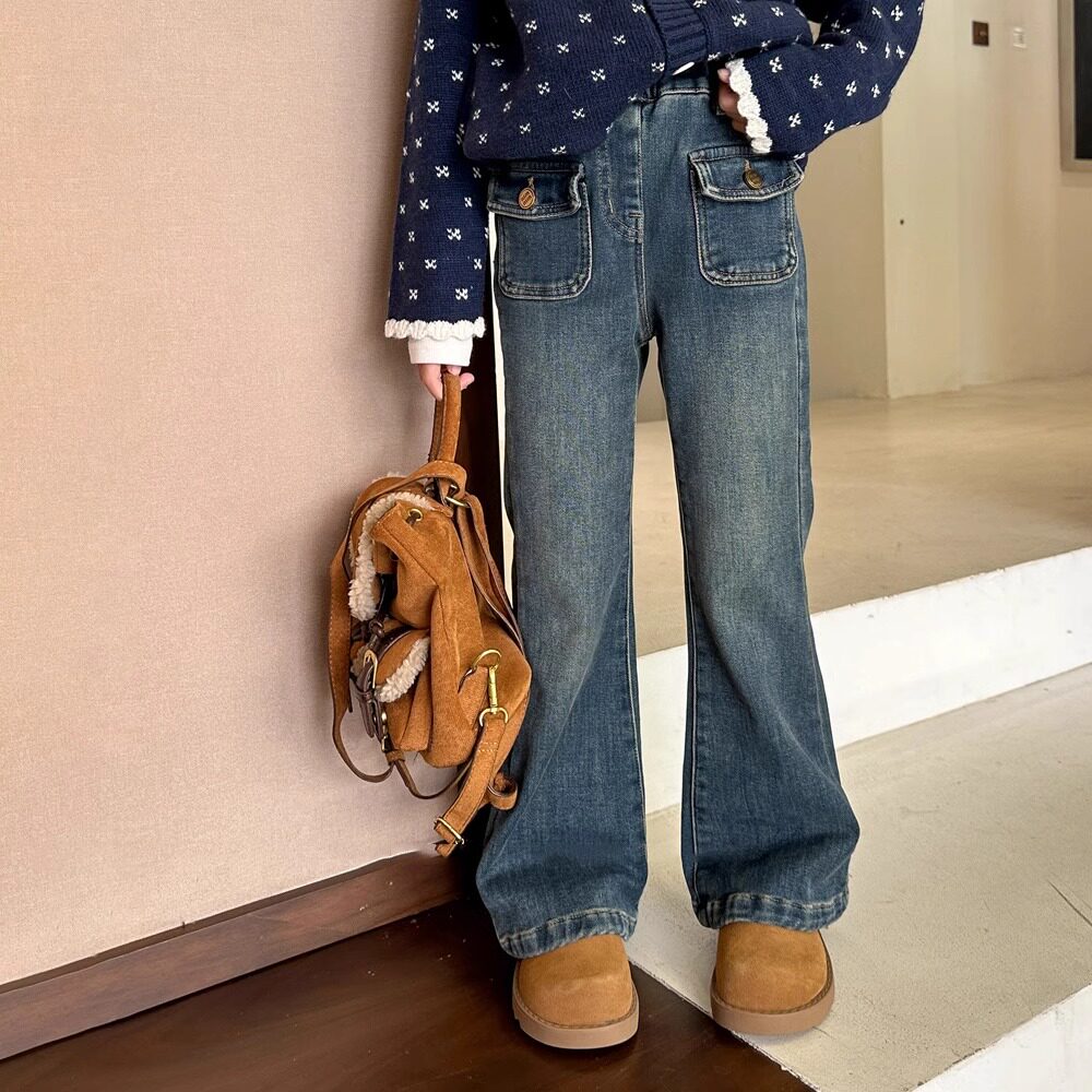 秋冬女童牛仔喇叭裤加绒裤子