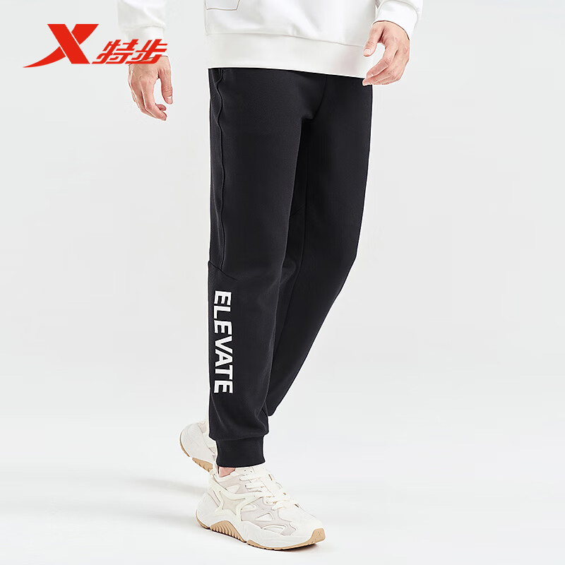 特步运动长裤男2024秋季新款宽松印花男裤休闲束脚裤976129630316