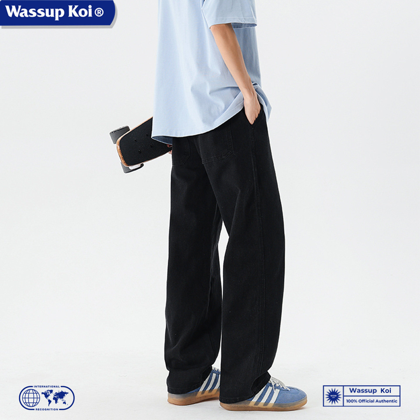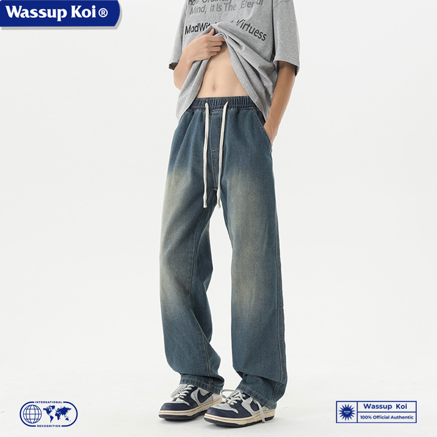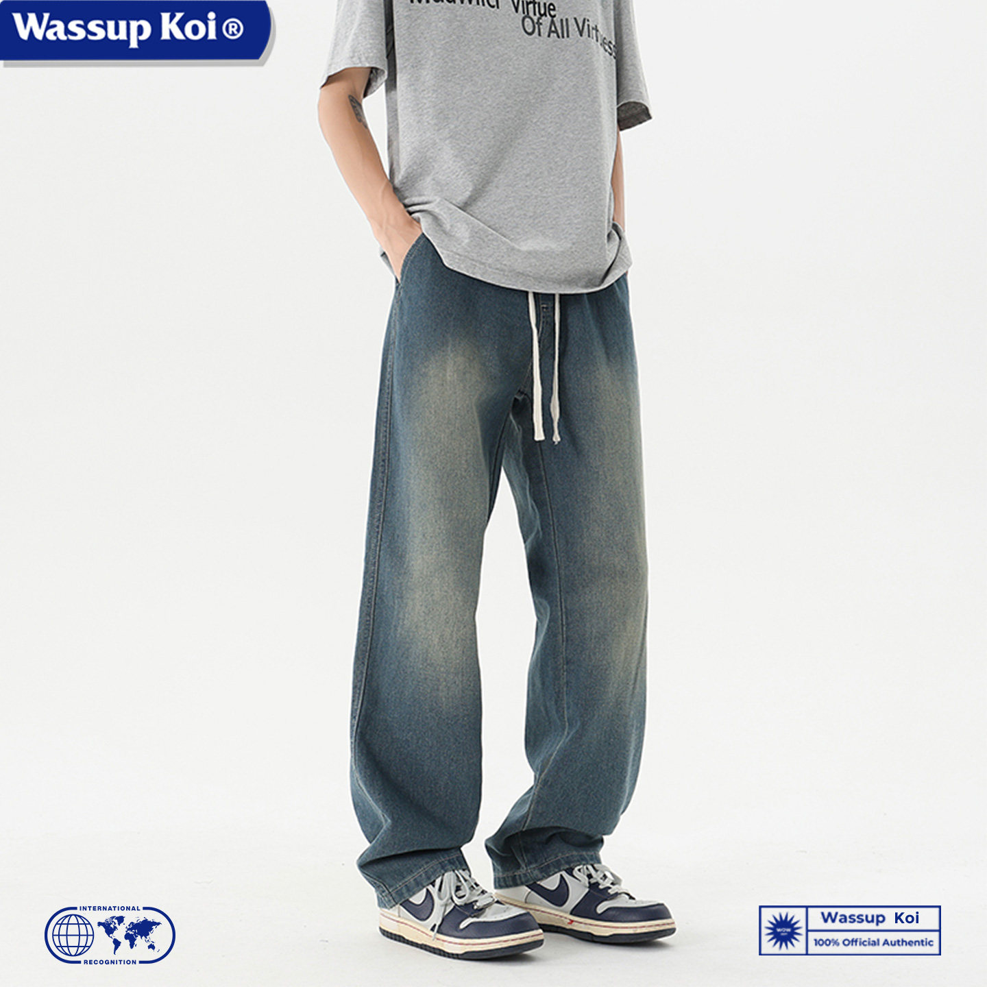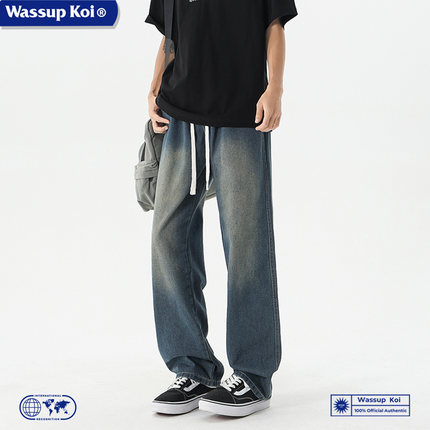 WASSUP KOI联名秋季牛仔裤潮牌宽松休闲直筒裤潮流百搭松紧腰长裤